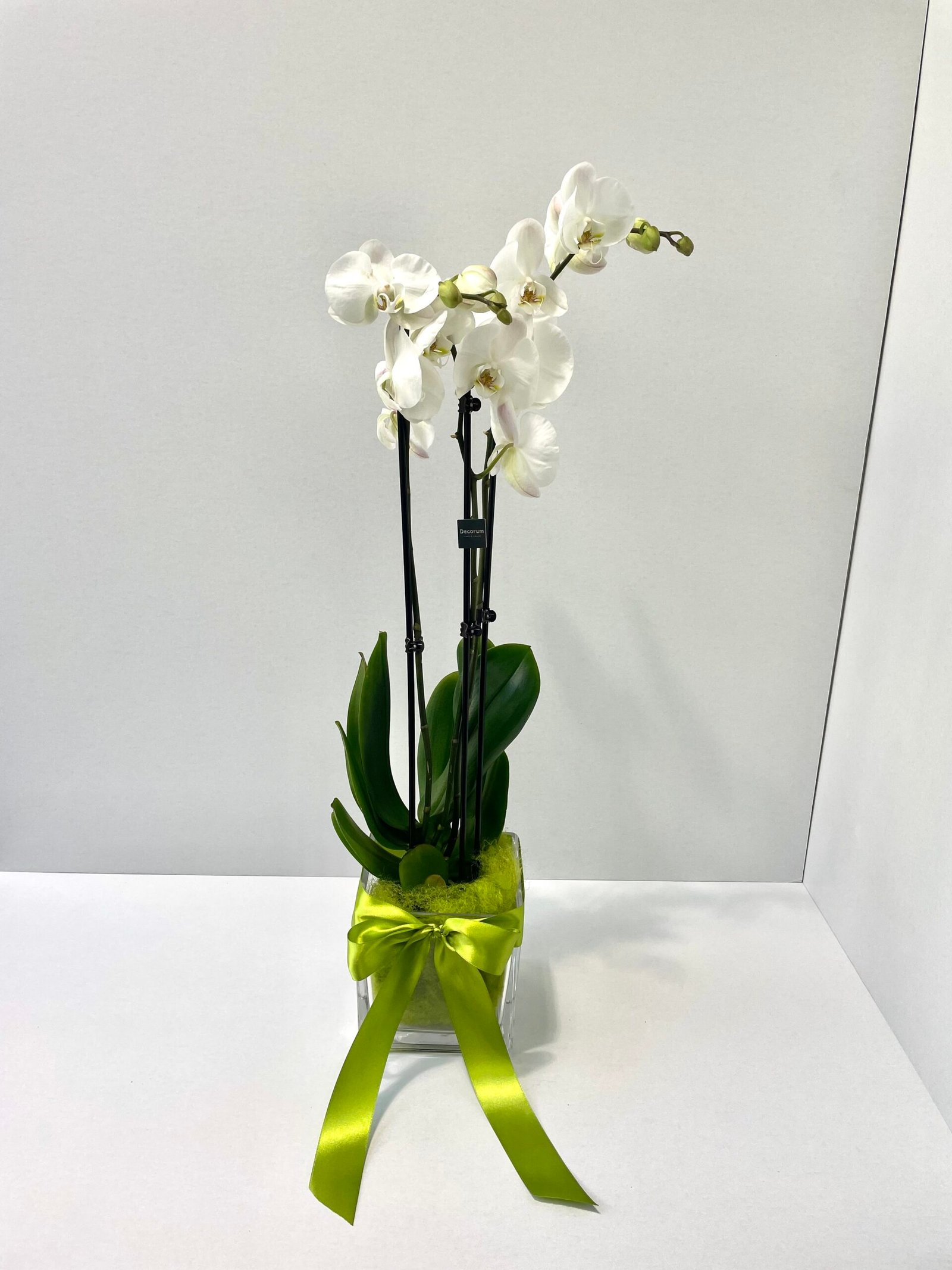 El cristal actúa como el lienzo perfecto para realzar la exuberancia de la orquídea. La elección de esta base influye significativamente en la presentación general, ofreciendo un marco estético que resalta la singularidad de cada flor.